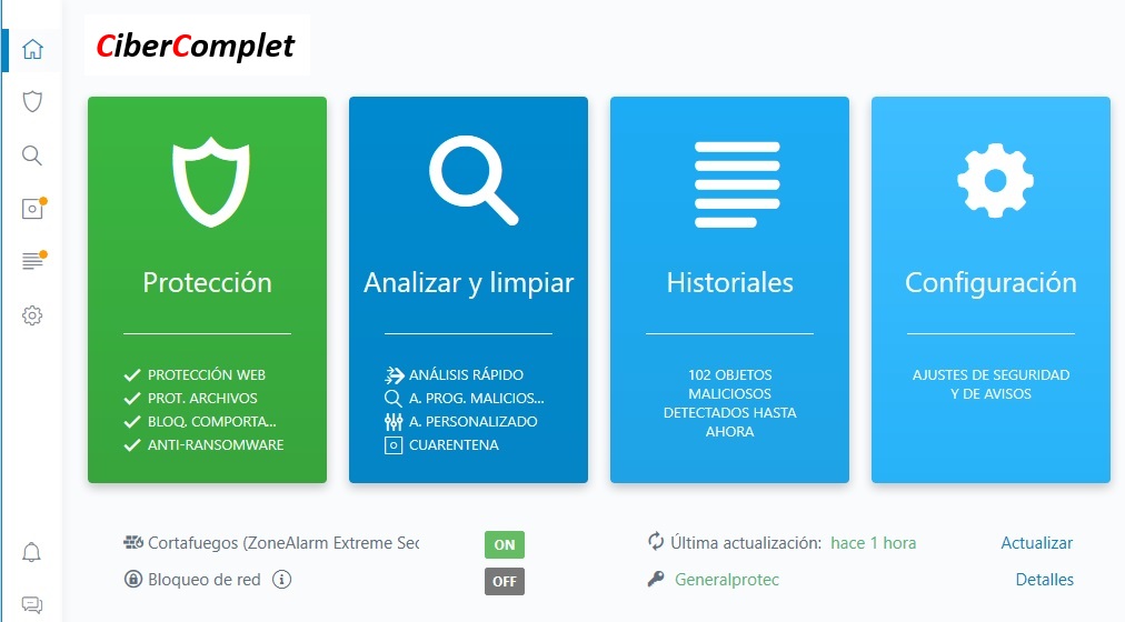 Para detener las amenazas nuevas y emergentes, Cibercomplet Home monitorea continuamente el comportamiento de todos los procesos activos e inmediatamente genera una alerta si se detecta una actividad sospechosa.